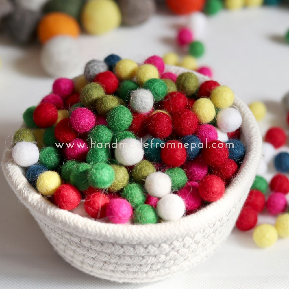 All the felt balls are made by women in our factory. Still in the deeper society of Nepal, large numbers of women are Housewife. Their duty is to clean the house, raise a baby, cook and look after the house where as the husband goes to work. Such women are always in the back stage of their life, where they are being treated as a housemaid only. But every person has a unique talent and they can be explored when given opportunities. Our group of women are excellent craft person now after months of hard work and practices. All our felt balls are directly from such women. We believe in fare wages and social contribution to such great women.
